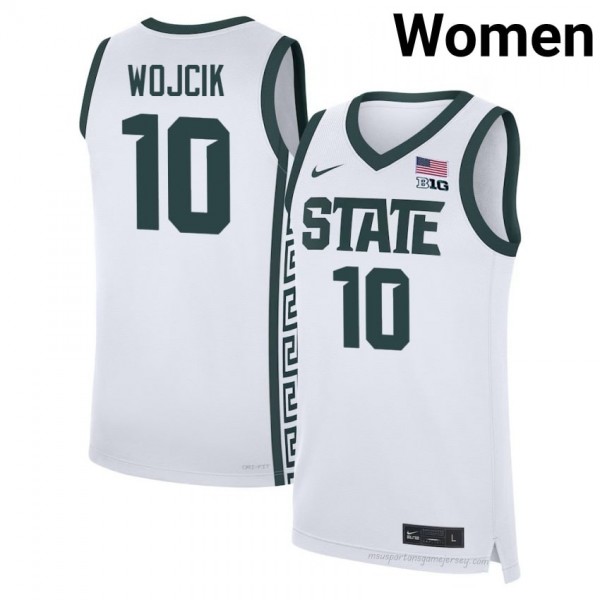 Authentic Denham Wojcik MSU Spartans #10 White Jersey - Women's NCAA Hoops Elite Collection