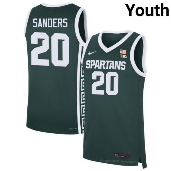 Authentic Nick Sanders MSU #20 Green Jersey - Youth Player Hoops Elite Collection