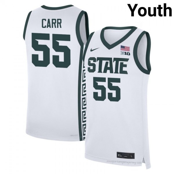 Own the Michigan State Spartans: Coen Carr #55 Spartans White University Jersey - Premium Youth Basketball Edition