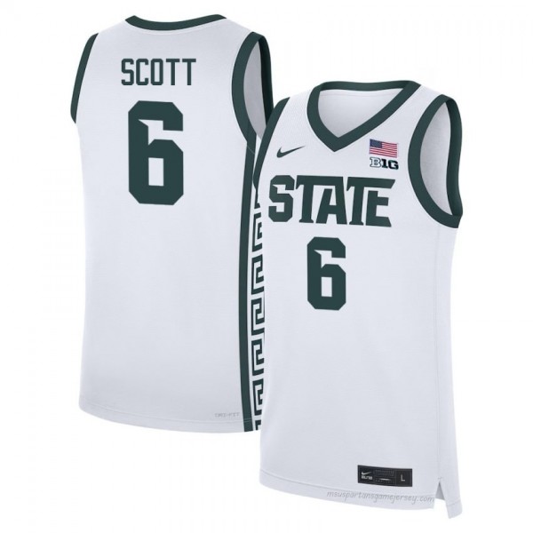 White MSU Spartans #6 Jordan Scott Men's NCAA Jersey - Heavy-Duty Stitched Basketball Uniform